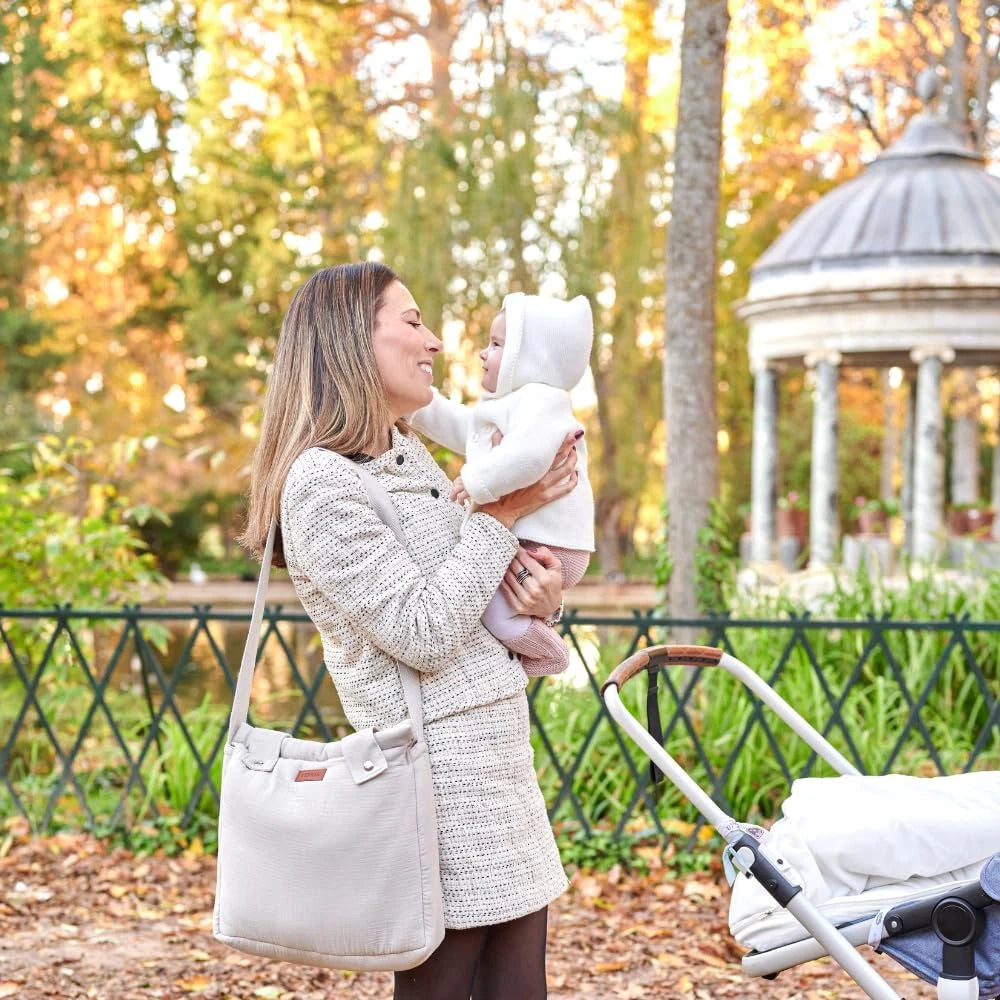 El bolso panera para carro de bebé beige destaca por su diseño elegante y su tonalidad suave que aporta calidez y estilo a cada paseo. Es el complemento ideal para padres que buscan funcionalidad sin renunciar a la estética.