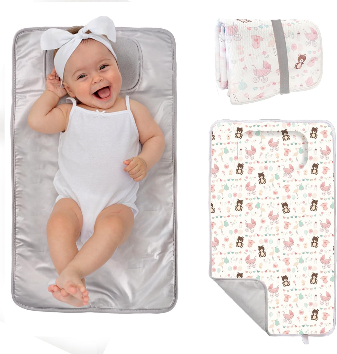 Fabricado con materiales resistentes y fáciles de limpiar, este cambiador mantiene al bebé limpio y cómodo durante los cambios de pañal fuera de casa. Su diseño con estampado de ositos añade un toque dulce y moderno que acompaña perfectamente las salidas con el bebé.